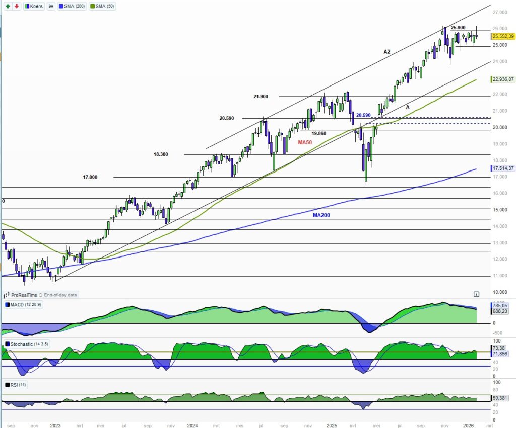 Met deze analyse geven wij onze verwachting weer van de richting van de beurs voor de korte termijn. Het is niet bedoeld als beleggingsadvies of als aanbeveling om bepaalde beleggingsposities in te nemen.