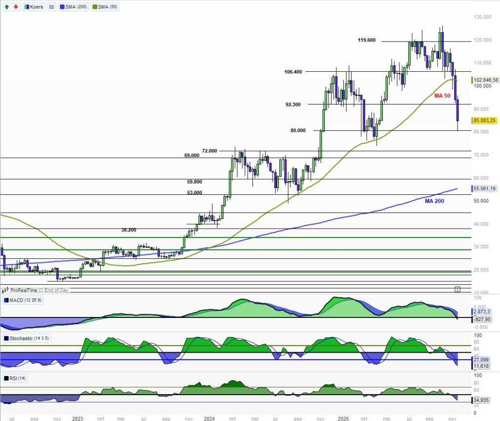 U weet het, ik ben na 20 jaar nog steeds verbaasd dat TA zo precies kan zijn. Bitcoin veerde dus op bij steun 80.000 maar de indicatoren staan nu echt slecht.