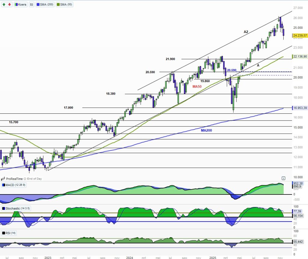 Met deze analyse geven wij onze verwachting weer van de richting van de beurs voor de korte termijn. Het is niet bedoeld als beleggingsadvies of als aanbeveling om bepaalde beleggingsposities in te nemen.