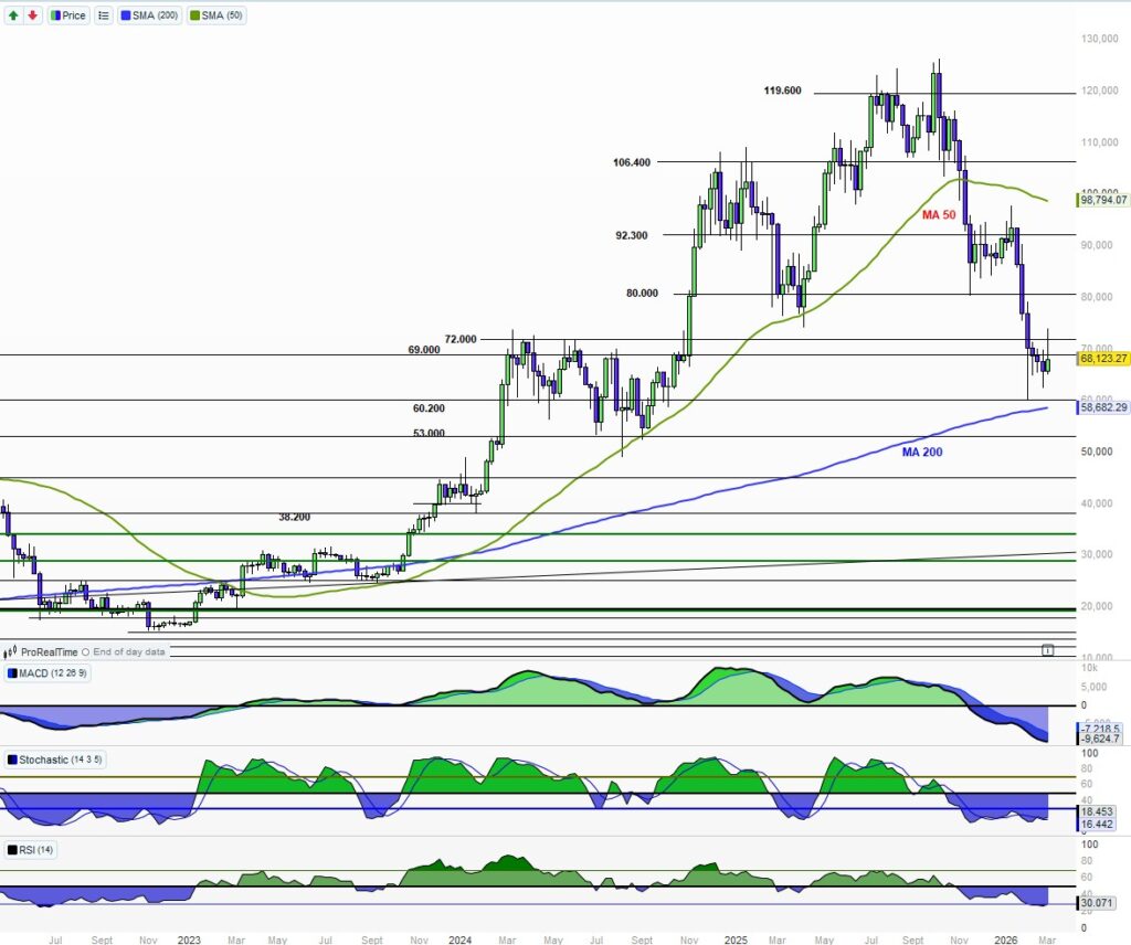 Bitcoin probeerde te herstellen maar werd grotendeels teruggeduwd. Beeld blijft erg zwak.