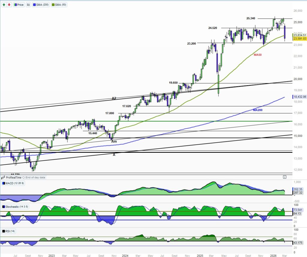 Misschien zijwaarts, maar de druk op 23.200 lijkt bij deze indicatoren vrij groot.