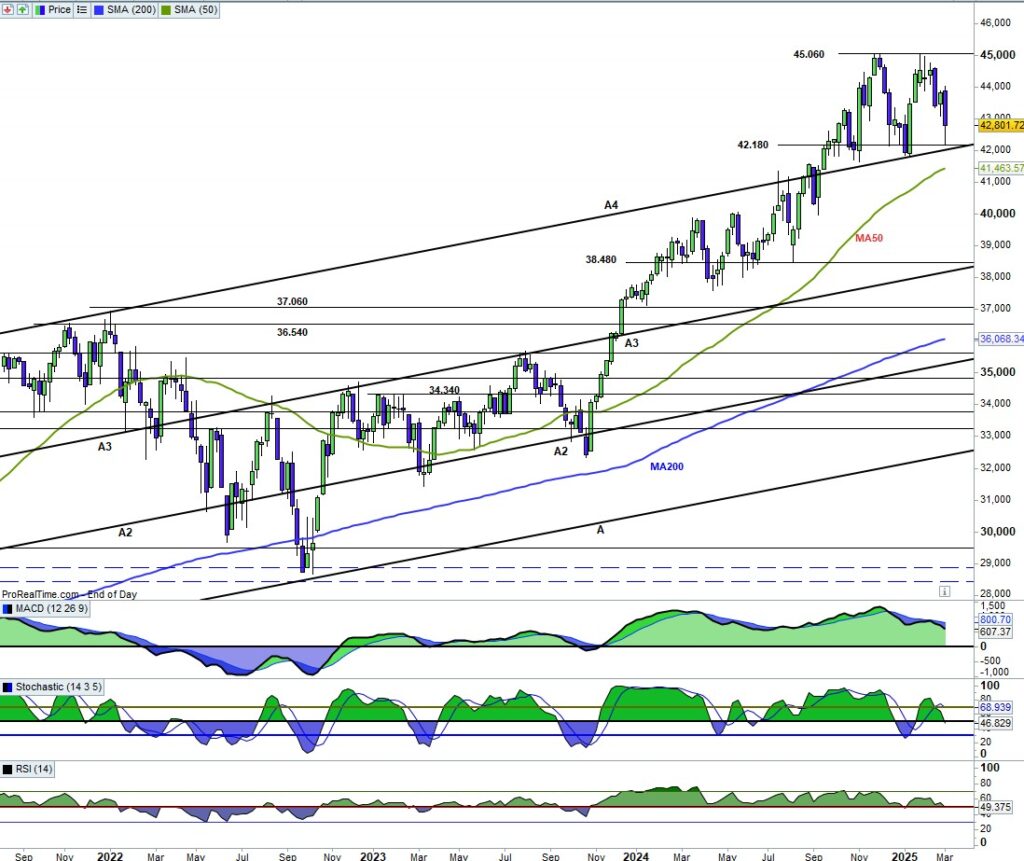 Wij voelen hier vooral de Nasdaq, al doen de heffingen van Trump ook de andere fondsen geen goed. We kunnen komende week dus nog wat lager.